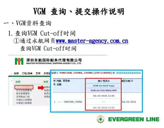 1. 通過電子方式提交VGM的截止時間 = 船公司制定的進港截止時間