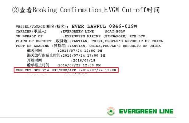 VGM截止期限與船公司截止重箱進場時間一致。