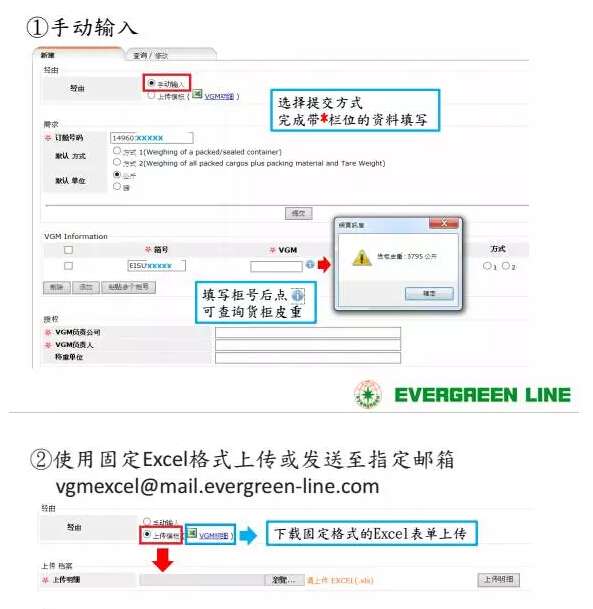 馬士基航運強烈不鼓勵手工方式(通過郵件或在電子渠道方式的文本框中填寫VGM)提交VGM。