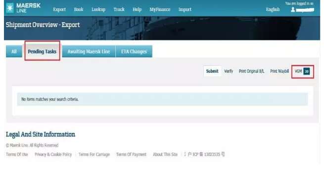 7、馬士基VGM 提交方式: