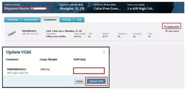 § VGM截止期限需成功提交VGM給馬士基航運 ,如用手工方式提交應(yīng)預(yù)留12小時手動輸入時間;