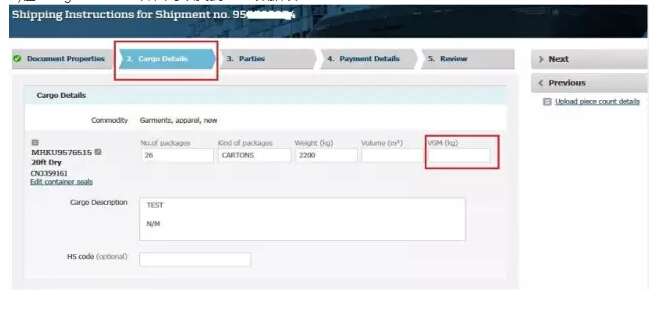 c. 對于拼箱貨物,即多個托運人合并貨物裝進同一個集裝箱,請務(wù)必指定其中一個托運人提交該集裝箱的VGM信息。