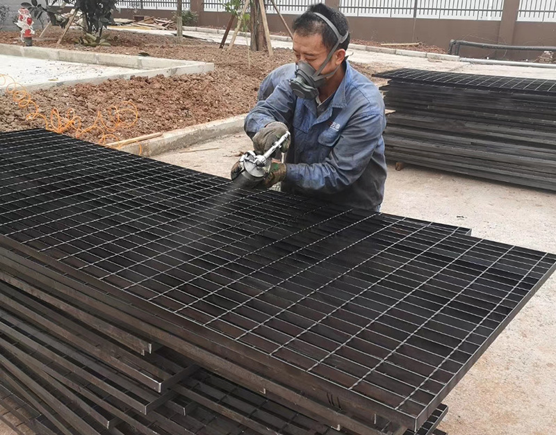 噴漆鋼格板是由負(fù)荷扁鋼和橫桿按一定間距經(jīng)緯排列,采用200噸液壓電阻焊自動(dòng)化設(shè)備焊接成原板,經(jīng)切割,開孔,包邊等工序加工而成客戶要求的產(chǎn)品。